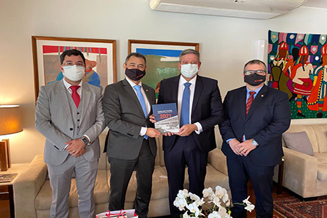 Ao final da reunião, o deputado Arthur Lira agradeceu a visita e recebeu um exemplar da Agenda Institucional 2021 do MPM das mãos de Antônio Duarte, bem como aceitou o convite para conhecer pessoalmente a Procuradoria-Geral, com vistas a prestigiar o centenário Parquet das Armas, o ramo decano do MPU.