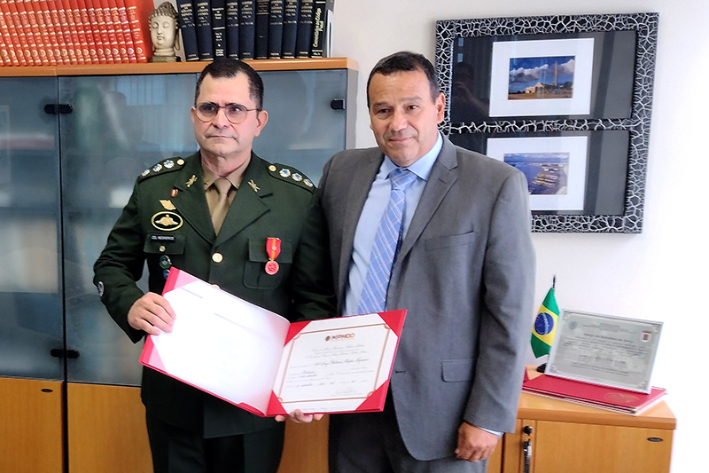 A Procuradoria de Justiça Militar em Porto Alegre realizou no dia 12 de abril cerimônia de entrega da comenda da Ordem do Mérito Ministério Público Militar. Na oportunidade, o coronel Luiz Fabiano Mafra Negreiros, atual chefe da Assessoria Jurídica da 3ª Região Militar, foi agraciado com a comenda no grau Distinção, como forma de reconhecimento a sua inestimável contribuição à instituição, destacando-se especialmente sua atuação na atividade de polícia judiciária em investigação de vulto deflagrada pela Procuradoria de Justiça Militar em Bagé, que proporcionou a recuperação para as Forças Armadas de elevado prejuízo apurado em decorrência de ilicitudes em compras de gêneros havidas em diversas organizações militares.