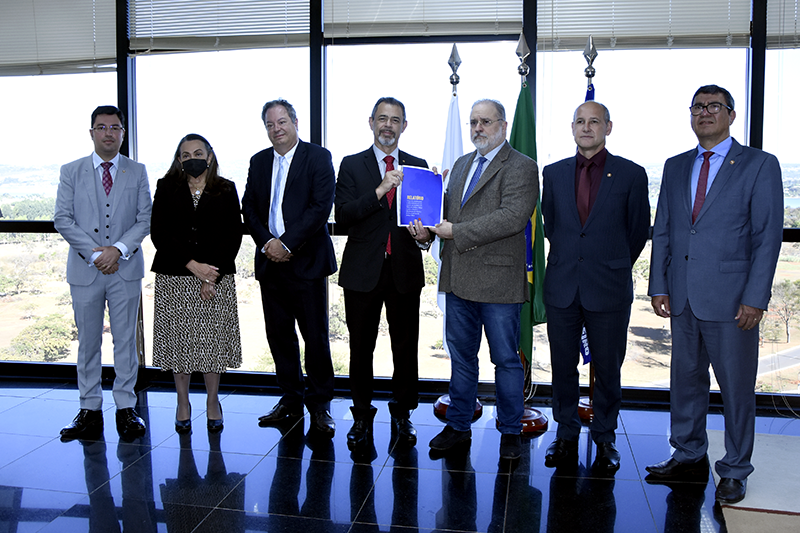Acompanharam o procurador-geral Antônio Duarte no encontro com Augusto Aras, o vice-procurador-geral de Justiça Militar, Clauro Roberto de Bortolli, coordenador do Grupo de Estudos que elaborou o Relatório; o corregedor-geral do MPM, Samuel Pereira; o subprocurador-geral de Justiça Militar e assessor da Presidência do Conselho Nacional do Ministério Público, Marcelo Weitzel; além do chefe de Gabinete para Assuntos Administrativos, Jorge Augusto Caetano de Farias. A secretária de Relações Institucionais do MPF, a procuradora Eunice Carvalhido também participou da reunião.