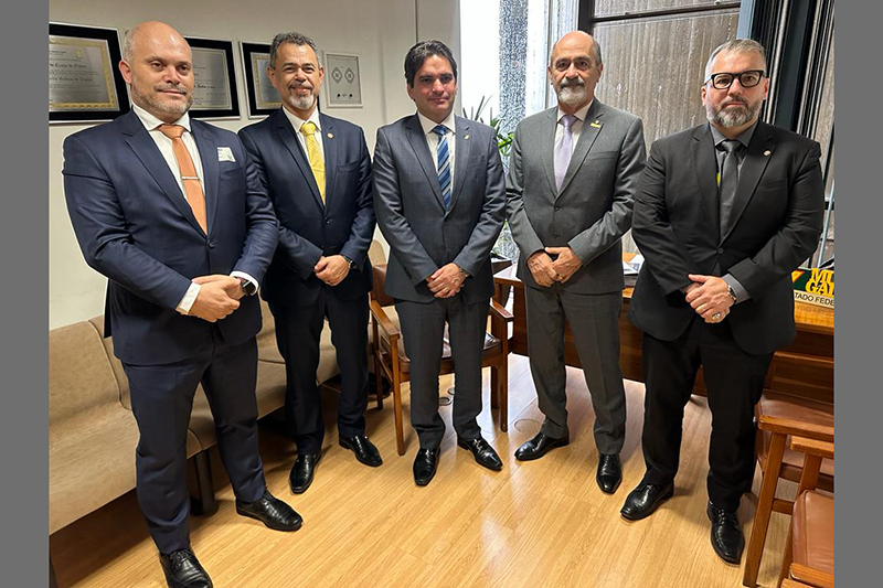 Ainda em tratativas pela aprovação do PL n° 2.969/2022, o procurador-geral de Justiça Militar, Antônio Pereira Duarte, esteve nesta tarde (21), na Câmara dos Deputados, com o relator, o deputado federal Murilo Galdino (Republicanos/PB). Também participaram do encontro, o presidente da ANMPM, Edmar Jorge de Almeida, o chefe de Gabinete para Assuntos Jurídicos, Cícero Robson Coimbra Neves, e o diretor-executivo do SindMPU, Renato Cantoni.
