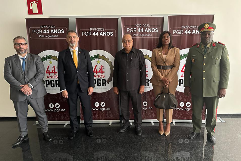O procurador-geral de Justiça Militar, Antônio Pereira Duarte, e o chefe de Gabinete de Assuntos Jurídicos e promotor, Cícero Coimbra Neves, estiveram no dia 28 de abril em visita à nova sede da Procuradoria-Geral da República de Angola, em Luanda, inaugurada nesta semana, durante as celebrações de seus 44 anos de criação.