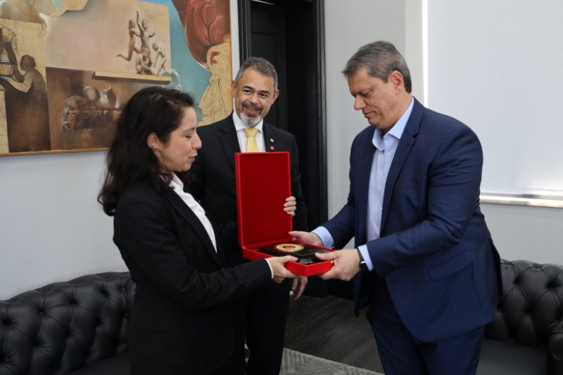 O procurador-geral de Justiça Militar, Antônio Pereira Duarte, foi recebido, na terça-feira, 20 de junho, pelo governador do Estado de São Paulo, Tarcísio de Freitas, no Palácio dos Bandeirantes, na capital paulista. Antônio Duarte chefiava a delegação do Ministério Público Militar em atividade do Curso de Ingresso e Vitaliciamento para Promotores de Justiça Militar na sede do governo de São Paulo.
