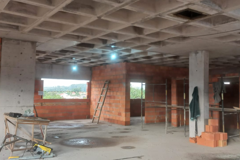 Obra – Na primeira etapa, já concluída, além da aprovação de projetos e emissão do alvará de construção junto à prefeitura, a D&M Construtora LTDA realizou desmatamento, escavações, escoramentos, aterro, movimentação de terra, fundação; estrutura de concreto armado; impermeabilização; instalação de Sistema de Proteção Contra Descargas Atmosféricas (SPDA) e limpeza geral da obra. Os serviços foram prestados pelo valor global de R$ 3.922.763,46.