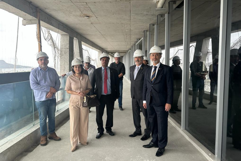 PJM Rio de Janeiro – Ainda no Rio de Janeiro, o procurador-geral Antônio Duarte, acompanhado pelo procurador Jorge Melgaço, a promotora Ângela Taveira e pelo presidente da ANMPM, Edmar Almeida, visitaram as obras da futura sede da PJM Rio de Janeiro, onde conversaram com os engenheiros sobre o andamento dos trabalhos.