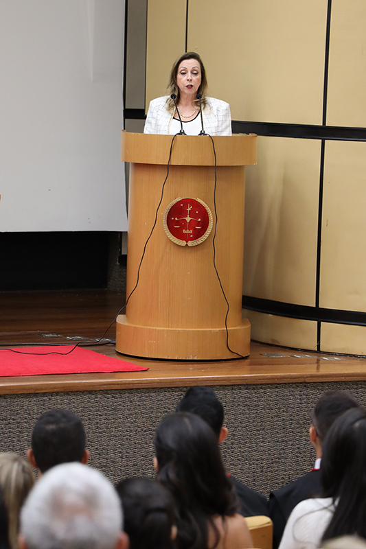 “Nesse início de jornada na carreira pública de Estado quero parabenizá-los e incentivá-los a trabalhar incessantemente para que nosso país cumpra a sua vocação de ser grande e próspero por meio da garantia de direitos a todos, por meio do devido processo legal e da promoção da paz. Façam isso com zelo, ponderação e lealdade institucional, sempre guiados por nossa Constituição Federal, por nossas leis que nos apontam o caminho a seguir. Lembrem-se sempre que o MPM favorece a promoção da Justiça, da Democracia e da cidadania. Por meio, não só da repressão, mas sobretudo da prevenção de conduções ilícitas nas Forças Armadas brasileiras em âmbito nacional e internacional”, estimulou a procuradora-geral.