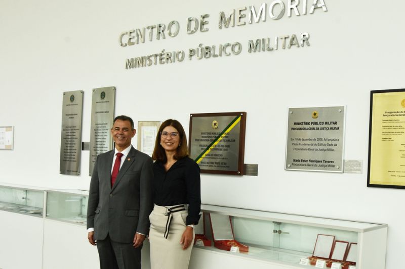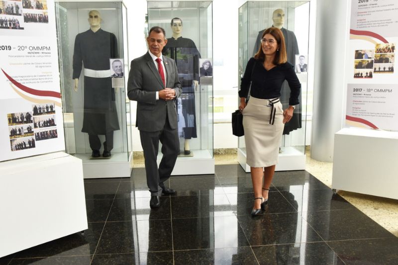 Raquel Branquinho também conheceu, acompanhada do procurador-geral, o Centro de Memória do Ministério Público Militar (CMMPM) e o auditório Subprocuradora-geral Adriana Lorandi, da Procuradoria-Geral de Justiça Militar, onde são realizados eventos como lançamentos de livros, exposições e seminários.