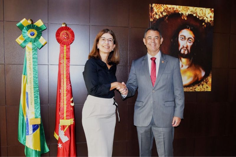 Na oportunidade, o PGJM entregou à diretora-geral da ESMPU o Medalhão do Centenário do Ministério Público Militar, destinado a distinguir autoridades e personalidades que tenham prestado notórios serviços e contribuído para o aprimoramento da instituição; bem como um kit com livros e artigos que levam a marca do MPM.