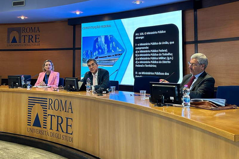 No dia 02/04, teve início no auditório do Dipartamento di Giurisprudenza da Universidade Roma TRE, em Roma/Itália, o Seminário Internacional “Sistema Jurídico Militar Comparado Brasil – Itália”, atividade acadêmica fruto do convênio firmado entre o Ministério Público Militar e a Universidade ROMA TRE, em outubro de 2023.