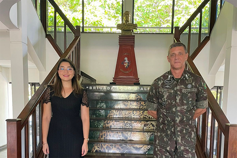 A promotora de Justiça Militar Karollyne Dias Gondim Neo realizou no dia 6 de outubro de 2022 visita institucional ao Comando da 1ª Brigada de Infantaria de Selva (1ª Bda Inf Sl), em Boa Vista/RR, onde foi recepcionada pelo comandante da unidade, general de Brigada Marcelo Lorenzini Zucco.
