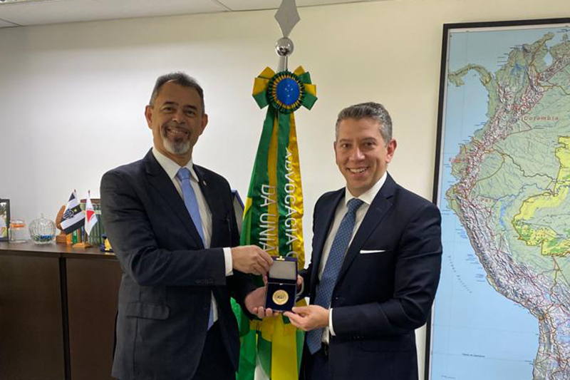 Nesta tarde (19), o procurador-geral de Justiça Militar, Antônio Pereira Duarte, esteve na sede da Advocacia-Geral da União (AGU), onde foi recebido pelo advogado-geral da União substituto, Adler Anaximandro de Cruz e Alves.
