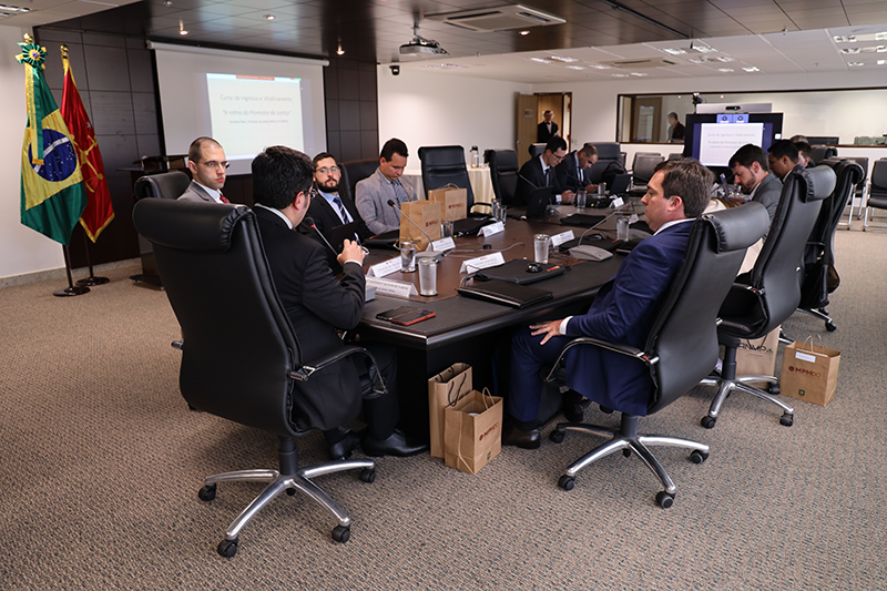 Doze novos Promotores de Justiça aprovados no 12° CPJM iniciaram nesta terça-feira (31/01), dia seguinte à posse, o Curso de Ingresso e Vitaliciamento (CIV) na carreira. Recepcionados pelo procurador-geral de Justiça Militar, Antônio Pereira Duarte, e pelo vice, Clauro Roberto de Bortolli, os novos membros ouviram três palestras na manhã de abertura do curso, que terá carga de 371 horas e validade de uma pós-graduação lato sensu, com a apresentação de um artigo científico ao final do curso que comporá publicação a ser ajustada com a ESMPU.