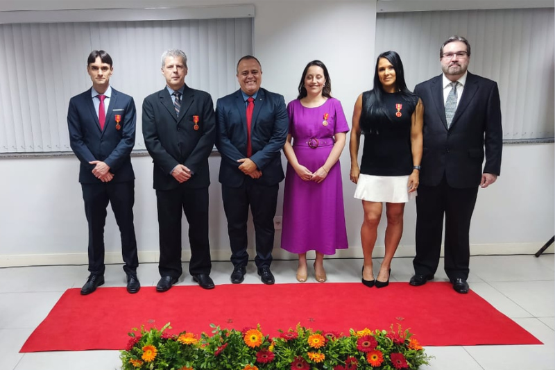 No grau Distinção, foram condecorados: o secretário administrativo Eduardo de Campos Bastos Neto; o assessor jurídico-chefe, James Benedito de Oliveira; e as assistentes jurídicas de 1ª Instância, Karina Crepaldi Alves Duarte e Juliana Consuli Milagres, todos servidores da PJM Juiz de Fora. Eles receberam a medalha das mãos do procurador de Justiça Militar Ulysses da Silva Costa Filho.