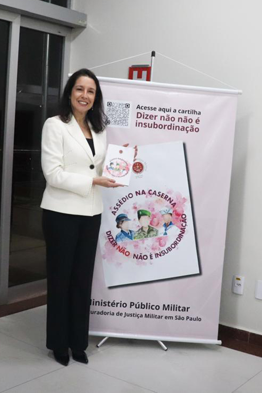 A procuradora de Justiça Militar em São Paulo, Helena Mercês Claret da Mota, idealizadora da Cartilha, realizou o pronunciamento oficial de lançamento, ressaltando que o foco foi nos desafios encontrados pelas mulheres no dia a dia da caserna, desde a resistência cultural e institucional até o assédio moral e sexual propriamente ditos. Helena Mercês da Mota acredita que a informação é a principal arma para combater tais condutas. “Garantir que todos saibam o que é o assédio e que certos comportamentos são inaceitáveis é o principal caminho para a prevenção e a eliminação dessa prática”, afirma.