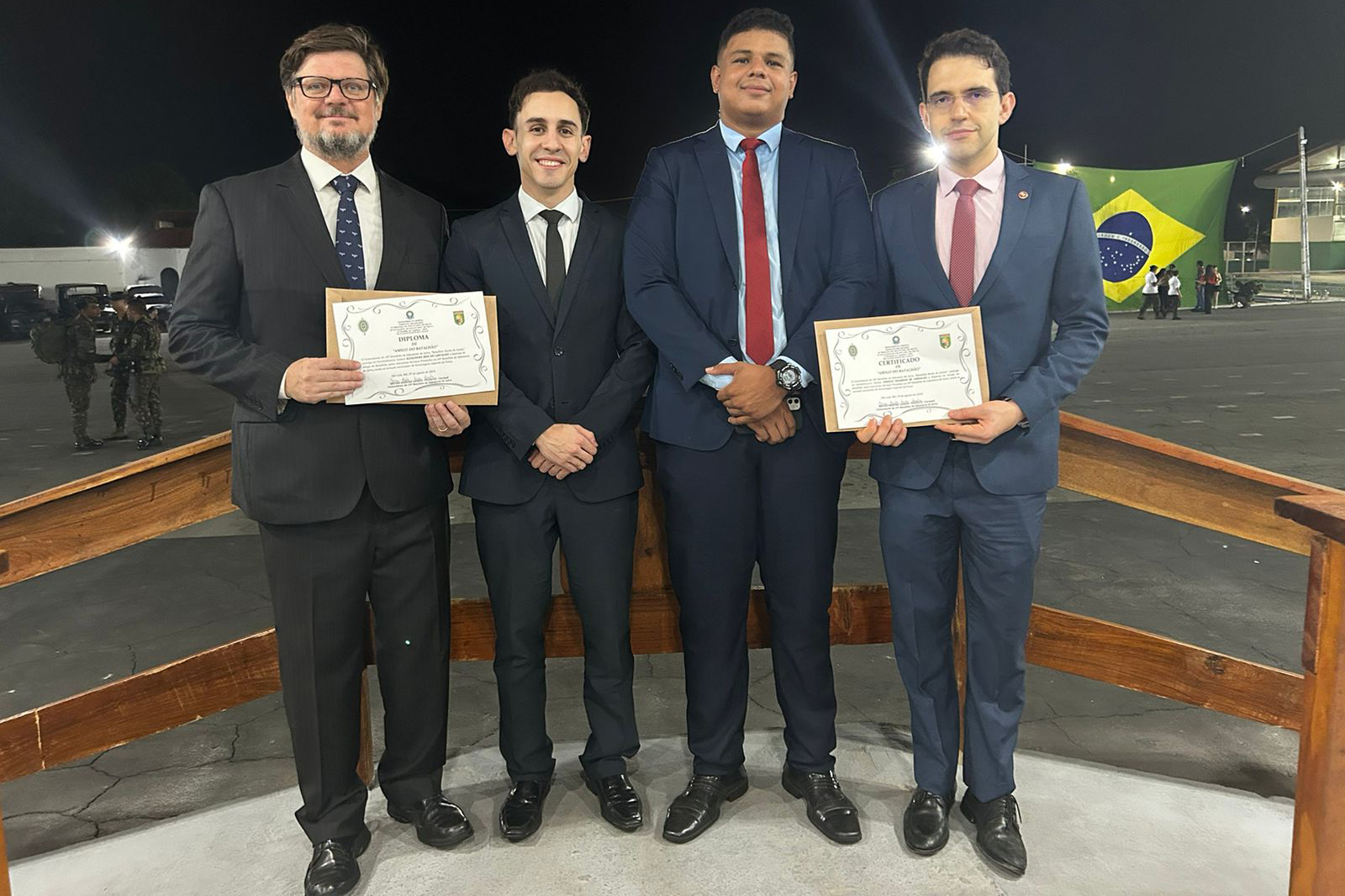 Por fim, o procurador de Justiça Militar Alexandre Reis de Carvalho e o promotor Vinícius Yscandar de Carvalho prestigiaram, no dia 29/08, a Solenidade de 154 Anos de criação do 24º Batalhão de Infantaria de Selva, ocasião em que receberam o Diploma de Amigo do 24º BIS. A cerimônia foi conduzida pelo general de Brigada Roberto Furtado Batista, comandante da 22ª Brigada de Infantaria de Selva, e que contou com a participação de diversas autoridades estaduais, como os presidentes do Tribunal Regional Eleitoral, desembargador José Gonçalo de Sousa Filho, do Tribunal de Justiça do Maranhão, desembargador José de Ribamar Froz Sobrinho, e o ex-presidente do Tribunal Regional Federal da 1ª Região, desembargador Federal Alberto José Tavares Vieira da Silva.