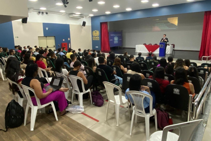 Já na noite do dia 24 de outubro de 2024, o procurador Alexandre Reis de Carvalho e o assessor jurídico-chefe João Vitor Moreira Serra ministraram palestra aos alunos da Universidade CEUMA, no âmbito do programa “Direito na Real”, como parte da iniciativa de divulgação das carreiras jurídicas ao público universitário. Na oportunidade, o procurador Alexandre Reis apresentou as atribuições e peculiaridades da carreira no MPM, além de expor os desafios inerentes ao ofício. A palestra teve como objetivo esclarecer as funções do MPM, fortalecer o conhecimento dos futuros operadores do direito sobre a carreira e proporcionar um espaço de troca e inspiração para aqueles que consideram seguir a carreira pública.
