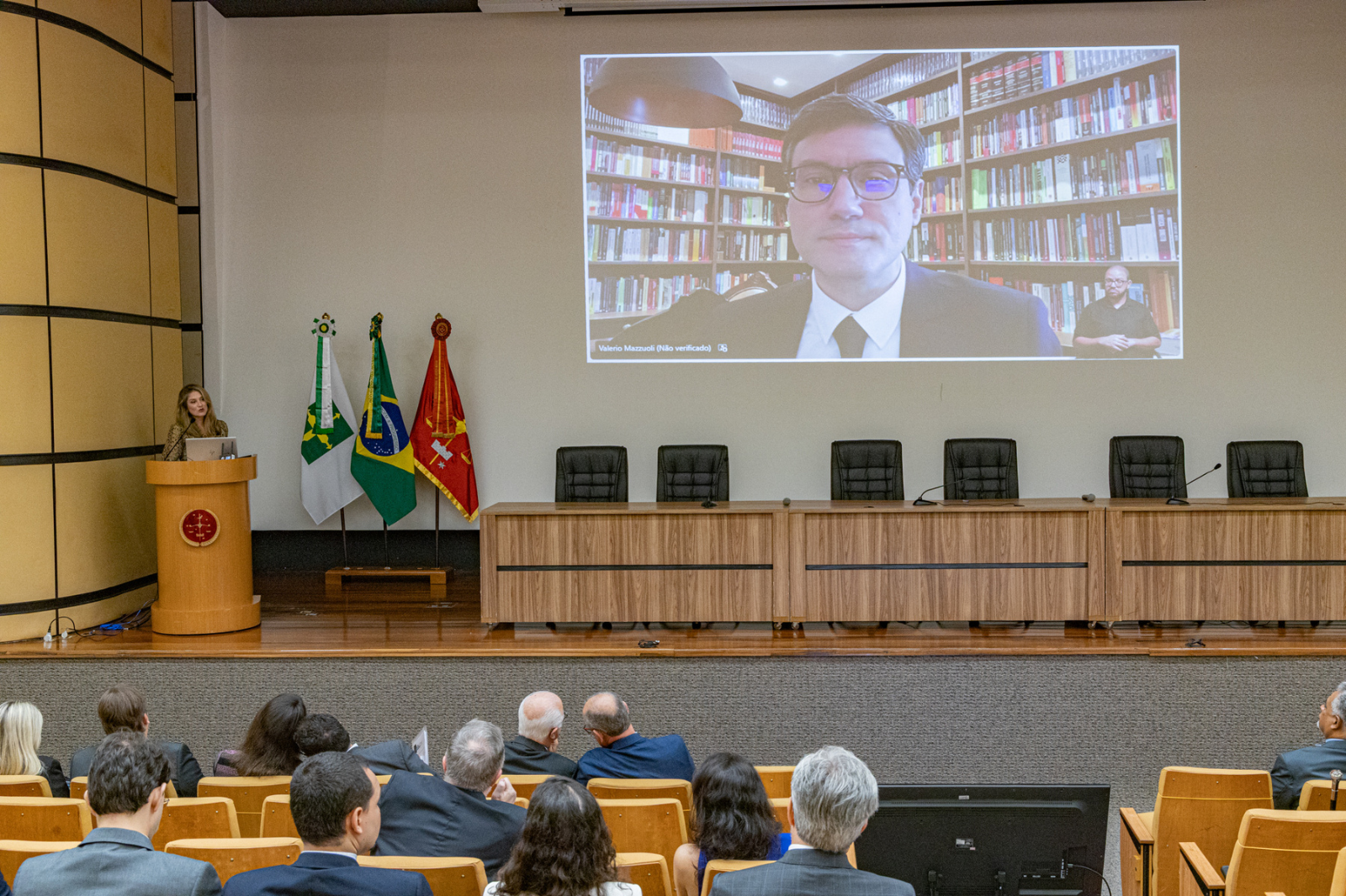A palestra de abertura do Congresso “O Direito Internacional Humanitário na atualidade e o controle de constitucionalidade”, foi proferida por videoconferência pelo professor da Universidade Federal do Mato Grosso, Valério Mazzuoli.