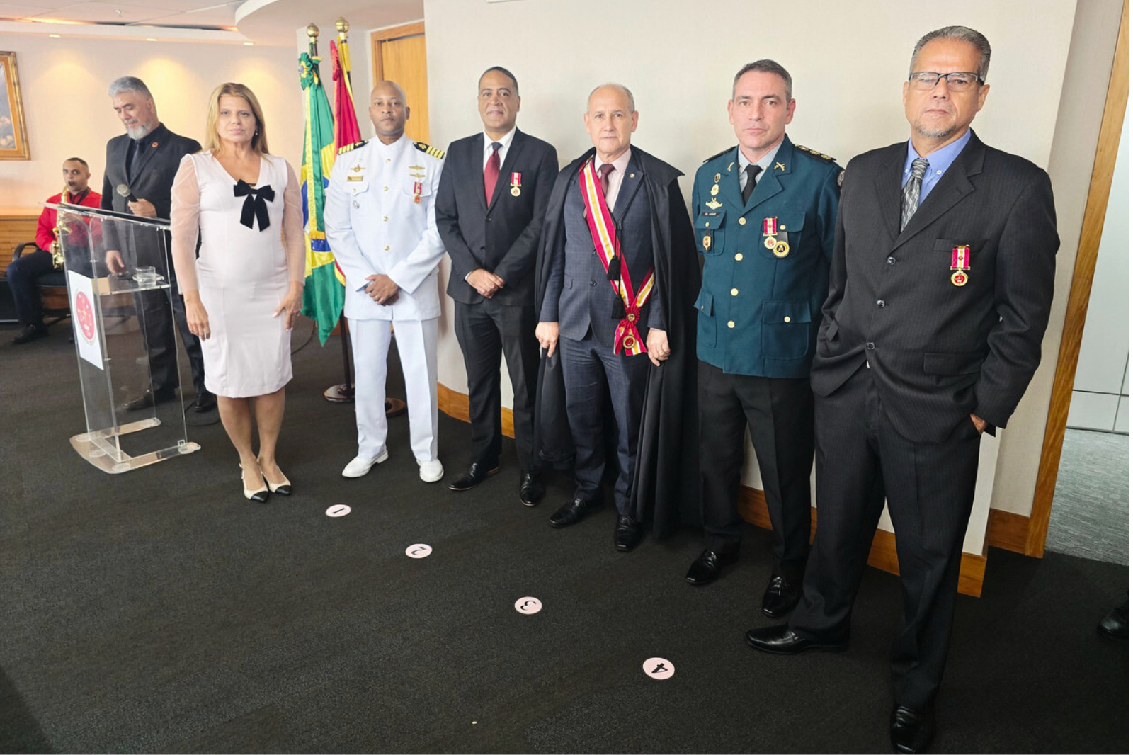 – no grau Distinção, o comandante do 1º Batalhão de Operações Litorâneas de Fuzileiros Navais, capitão de mar e guerra André Luiz Guimarães Silva; o subsecretário de Inteligência da PM do estado do Rio de Janeiro, coronel PM Uirá do Nascimento Ferreira; o comandante do 6º Batalhão da PM do estado do Rio de Janeiro, coronel PM Luciano Henrique Alcantara Cunha; e, o servidor do MPM Luís Otávio Schalcher de Almeida.
