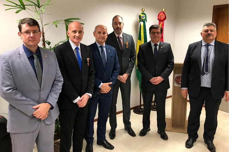 Os agraciados receberam as medalhas das mãos do procurador-geral de Justiça Militar, Clauro Roberto de Bortolli, do procurador de Justiça Militar Soel Arpini e do promotor de Justiça Militar Murilo Antonio dos Santos.