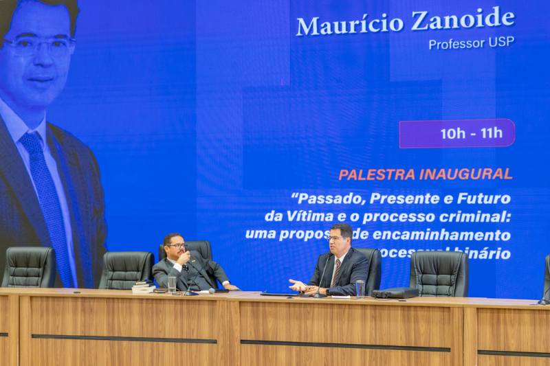 Abrindo a programação do Seminário, o professor da Universidade de São Paulo Maurício Zanoide proferiu a palestra inaugural Passado, Presente e Futuro da Vítima e o processo criminal: uma proposta de encaminhamento processual binário”.
