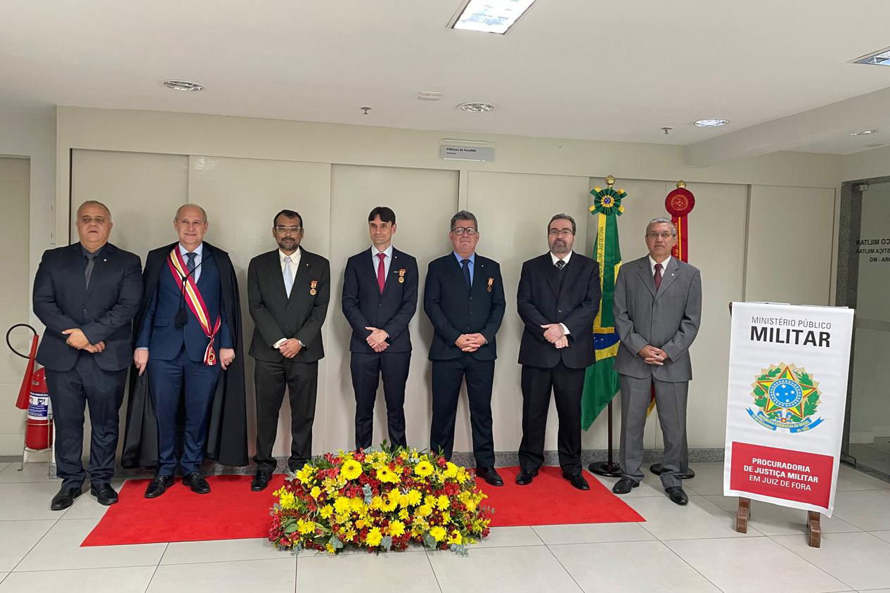 Indicados pela PJM Juiz de Fora, foram agraciados com a OMMPM, no grau Distinção, os servidores do Ministério Público Militar: Yury Tom Keith Ferreira Feliciano, Andréa Mentor de Araújo e Fernando Cosme de Oliveira. O procurador-geral de Justiça Militar, Clauro Roberto de Bortolli, e o procurador de Justiça Militar Ulysses da Silva Costa Filho fizeram a outorga das comendas.
