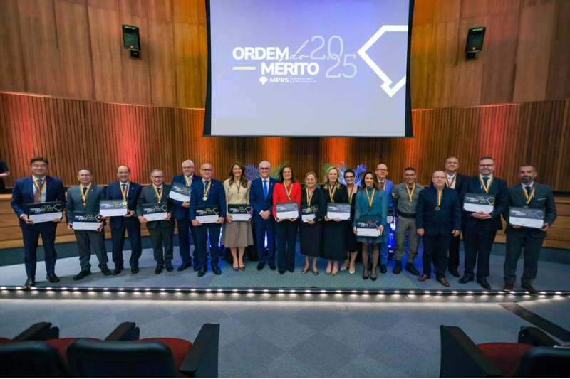 Ordem do Mérito MPRS – Ainda no Rio Grande do Sul, em Porto Alegre, na noite do dia 6 de novembro, o procurador-geral Clauro Bortolli e o conselheiro nacional do Ministério Público e procurador de Justiça Militar, Jaime de Cassio Miranda, foram condecorados com a Ordem do Mérito do Ministério Público do Rio Grande do Sul (MPRS). Na oportunidade, 21 personalidades foram homenageadas por seus méritos e relevantes serviços prestados à instituição e à cultura jurídica do Estado. Ambos, o procurador-geral e o conselheiro nacional receberam a comenda no grau Grã-Cruz.