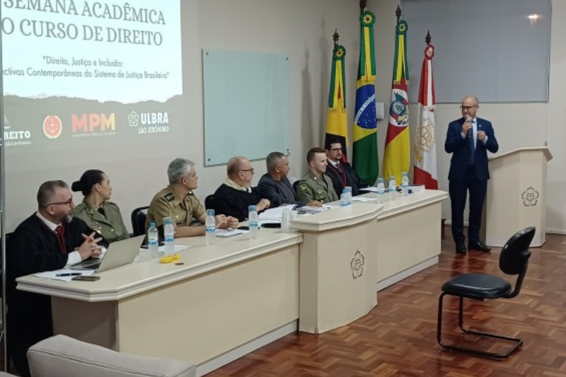O procurador-geral de Justiça Militar, Clauro Roberto de Bortolli, ministrou a palestra de abertura da IV Semana Acadêmica do Curso de Direito, realizada pela Universidade Luterana do Brasil (Ulbra) de 3 a 5 de novembro na cidade de São Jerônimo/RS.