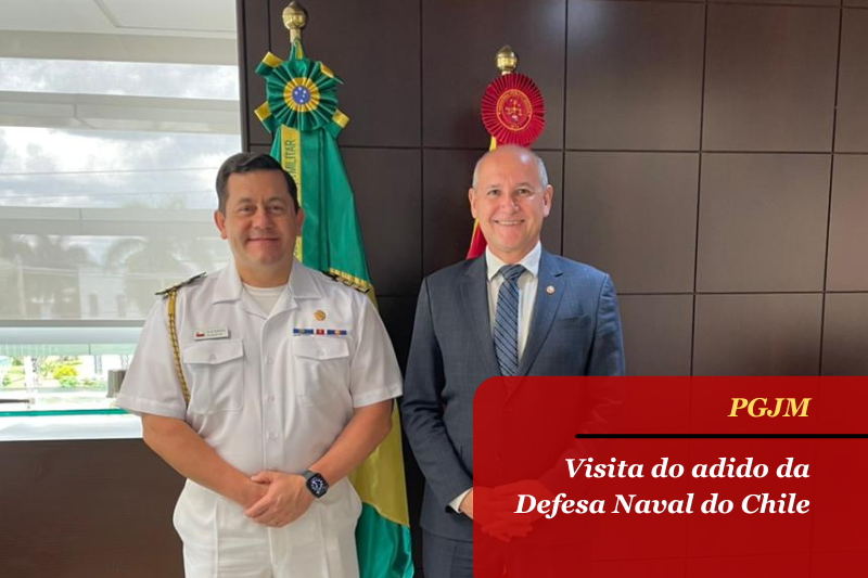 A Procuradoria-Geral de Justiça Militar recebeu, na tarde desta segunda-feira (10/11), a visita institucional do adido da Defesa Naval do Chile no Brasil, capitão de mar e guerra Alejandro Elgueta González. O oficial foi recebido pelo procurador-geral de Justiça Militar, Clauro Roberto de Bortolli, em encontro que reforça o compromisso Ministério Público Militar (MPM) com o fortalecimento das relações internacionais no âmbito jurídico e de ensino.