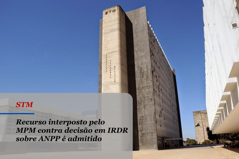 No dia 2 de dezembro, a Presidência do Superior Tribunal Militar (STM) admitiu o Recurso Extraordinário interposto pela Procuradoria-Geral da Justiça Militar contra a decisão proferida pelo próprio tribunal no julgamento do Incidente de Resolução de Demandas Repetitivas (IRDR) 7000457-17.2023.7.00.0000. Na decisão, o STM havia definido que o acordo de não persecução penal (ANPP) e a suspensão condicional do processo (sursis processual) não poderiam ser aplicados na Justiça Militar da União.