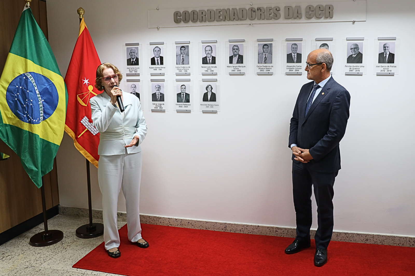 O primeiro ato da homenagem constituiu-se em cerimônia realizada nas dependências da Câmara de Coordenação e Revisão (CCR), onde o procurador-geral de Justiça Militar, Clauro Roberto de Bortolli, presidiu a aposição da foto da subprocuradora-geral, primeira mulher a figurar na galeria de coordenadores da CCR do MPM.