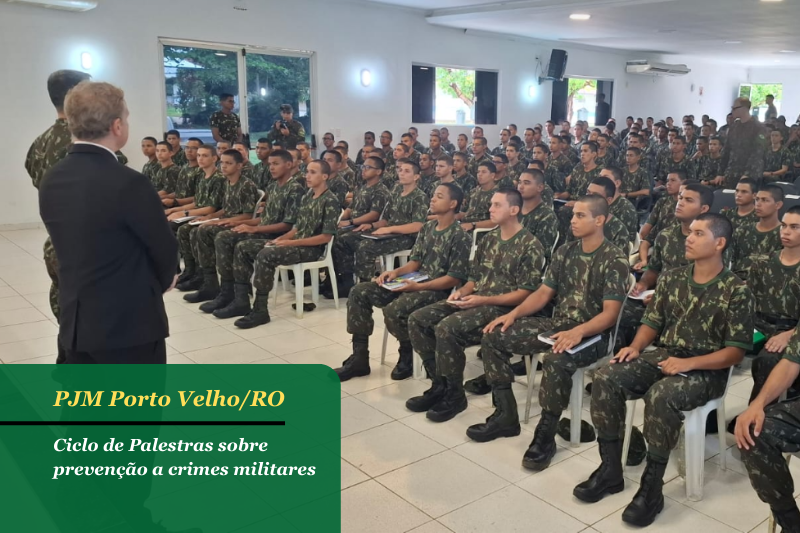 A Procuradoria de Justiça Militar em Porto Velho/RO realizou, entre os dias 3 e 5 de março, o 2º Ciclo de Palestras sobre Prevenção à Prática de Crimes Militares. A iniciativa teve como objetivo principal orientar militares sobre os crimes de maior incidência no âmbito das organizações militares, bem como reforçar medidas preventivas e a importância da conduta ética, disciplinada e alinhada aos preceitos legais que regem a carreira militar.