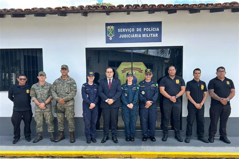 Após a palestra, o promotor Rodrigo Santana visitou as instalações do Serviço de Polícia Judiciária Militar, responsável pelas perícias realizadas no âmbito do 4º Distrito Naval, acompanhado pelo capitão de Fragata (T) Noel Calandrine Leal , encarregado do Serviço de Polícia Judiciária Militar e atual chefe da unidade.