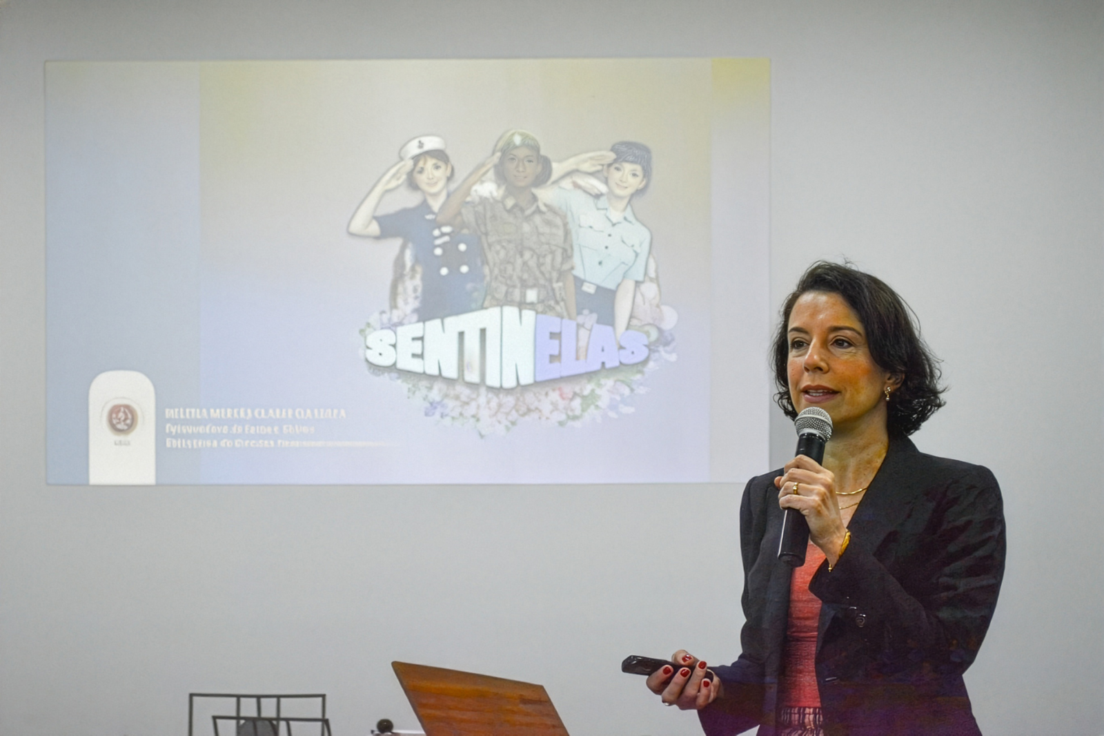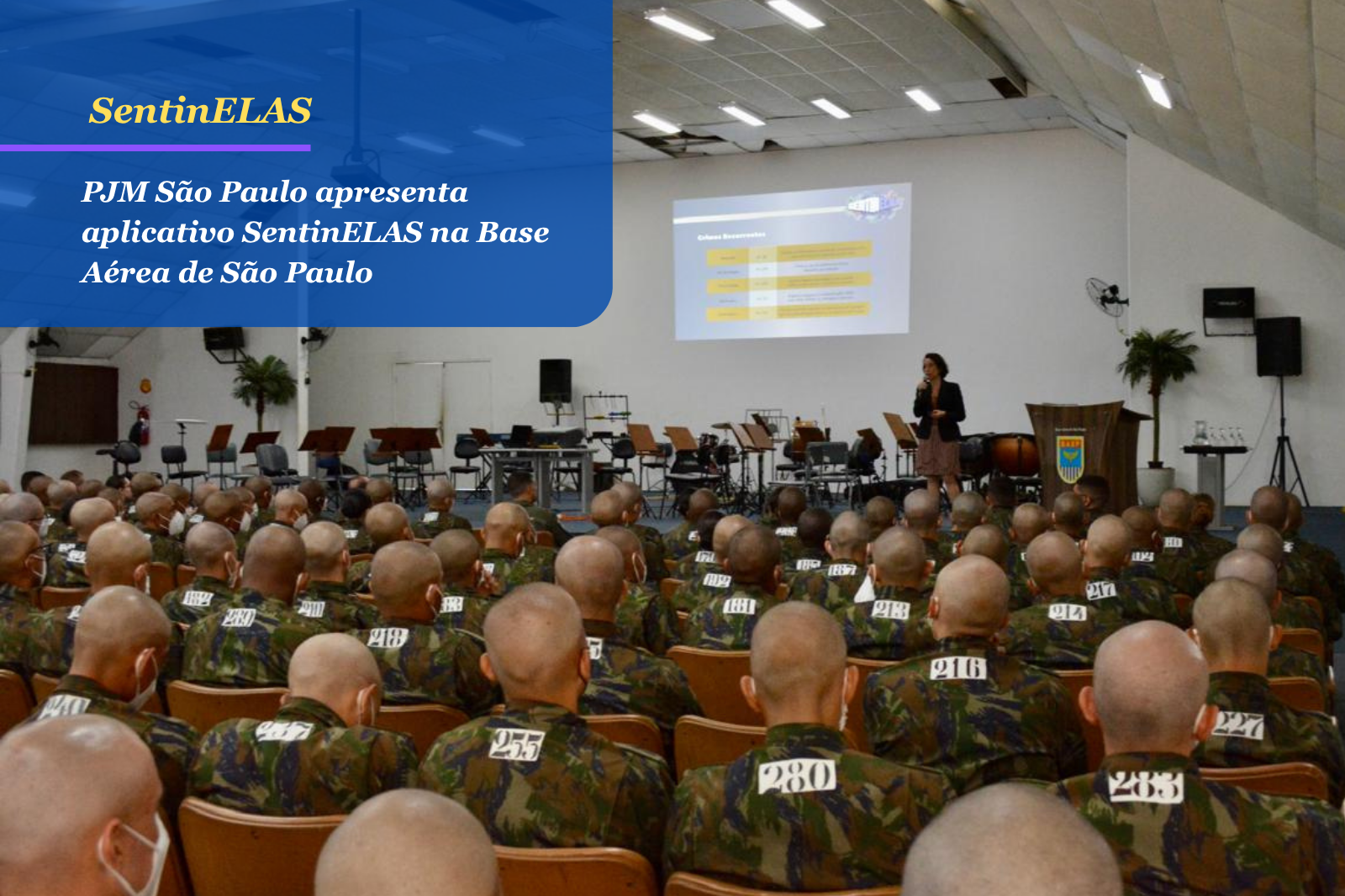 Na ocasião, foi destacado o aplicativo SentinELAS, desenvolvido pela Secretaria de Direitos Humanos e Humanitário (SDHH), em parceria com a Secretaria de Comunicação Institucional (SECOM), com foco específico nas recrutas que ingressaram recentemente no Serviço Militar Inicial Feminino (SMIF).