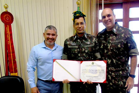 A Procuradoria de Justiça Militar em Campo Grande recebeu nesta tarde (17) a visita dos generais de Brigada João Denison Maia Correia e André Luiz Ribeiro Campos Allão, da 18ª Brigada de Infantaria de Fronteira, sediada em Corumbá/MS. Na oportunidade, o general Denison, que deixa o comando da unidade, veio apresentar o general Allão, novo comandante do 18ª Bda Inf Fron.
