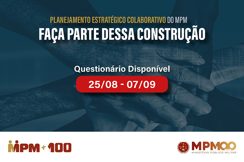Uma nova etapa na elaboração do Plano Estratégico da Instituição para o período 2021-2026 teve início hoje (25), com o lançamento do Questionário de Diagnóstico. Os integrantes do MPM são convidados a responder perguntas nas quais manifestarão as percepções, ent. . .27 de agosto de 2020