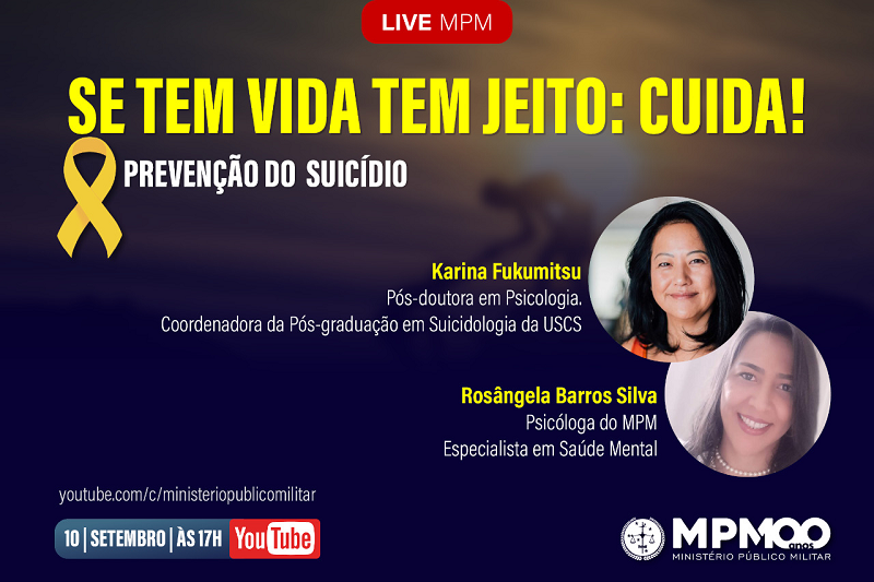 Hoje, às 17 horas, em alusão ao Dia Internacional de Prevenção ao Suicídio, o MPM promove a Live “Se tem Vida tem jeito: Cuida – Prevenção do suicídio” com a participação da palestrante Karina Okajima Fukumitsu, psicóloga pós-doutorada em psicologi. . .10 de setembro de 2020