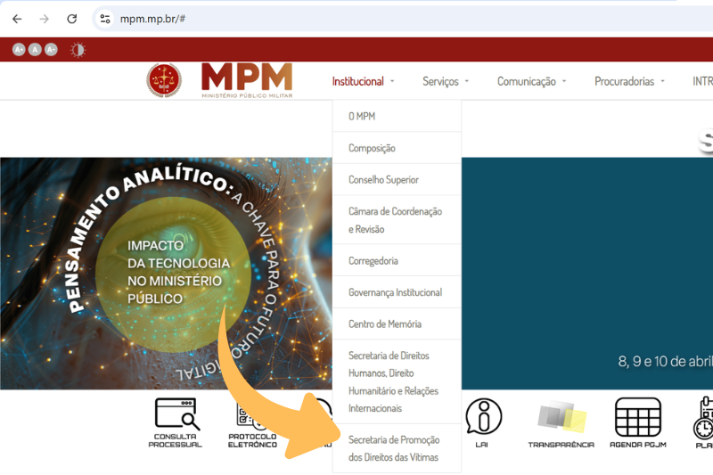 Link da Secretaria de Promoção dos Direitos das Vítimas na página eletrônica do MPM