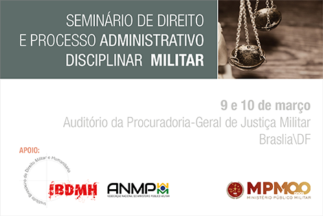 Estão abertas as inscrições para o Seminário de Direito e Processo Administrativo Disciplinar Militar, a ser realizado nos dias 9 e 10 de março na Procuradoria-Geral de Justiça Militar, em BrasÃlia. As inscrições devem ser feitas no link do Seminário no endereço: http. . .3 de março de 2020
