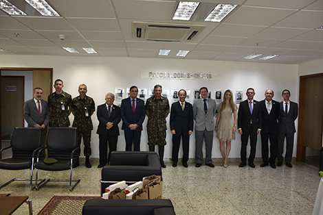 O procurador-geral de Justiça Militar, Jaime de Cassio Miranda, recebeu hoje (24) a visita do chefe de gabinete do Comando do Exército, Gen. Div. Fábio Benvenutti Castro, e do chefe de gabinete do Ministro da Ciência e Tecnologia, Inovações e Comunicação, Brig. Celestino. . .24 de setembro de 2019