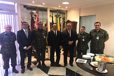 No dia 4 de julho, o procurador-geral de Justiça Militar, Jaime de Cassio Miranda, o vice-procurador-geral Roberto Coutinho e o procurador e presidente da ANMPM, Antônio Pereira Duarte, visitaram o Departamento-Geral do Pessoal, no Quartel General do Exército, em Brasília. Pa. . .6 de julho de 2018
