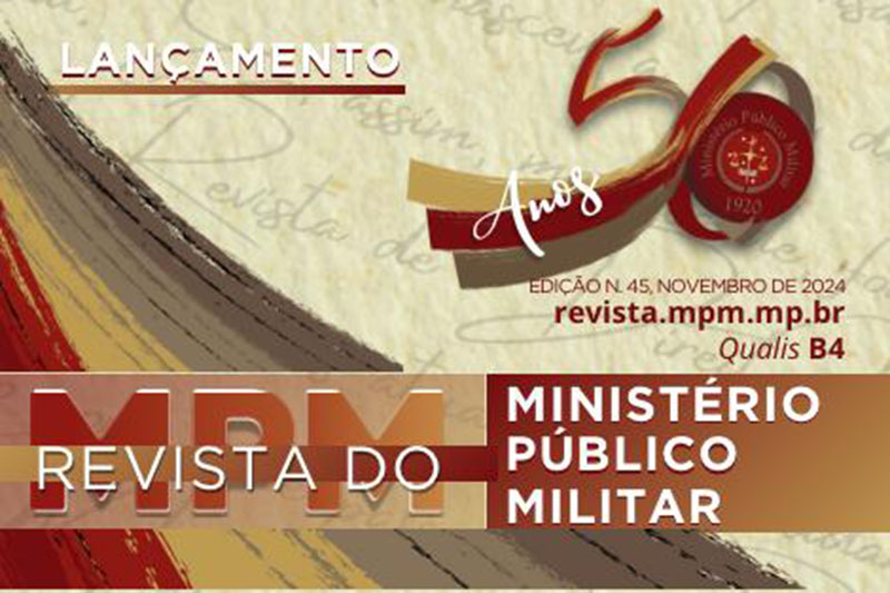 O Conselho Editorial do Ministério Público Militar lançou, no dia 28 de novembro, a edição n. 45 da Revista do Ministério Público Militar, referente ao segundo semestre de 2024, fechando este ano de comemoração dos 50 anos da Revista do Ministério Público Militar com . . .6 de dezembro de 2024