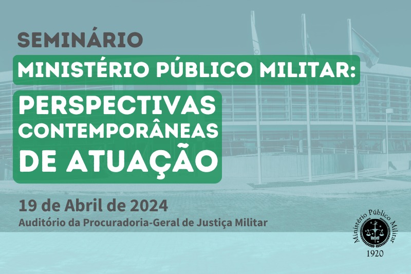 O Ministério Público Militar realiza no dia 19 de abril o Seminário Ministério Público Militar: perspectivas contemporâneas de atuação, no auditório da Procuradoria-Geral de Justiça Militar, em Brasília/DF. O objetivo do evento é discutir os temas sensíveis mais. . .18 de abril de 2024