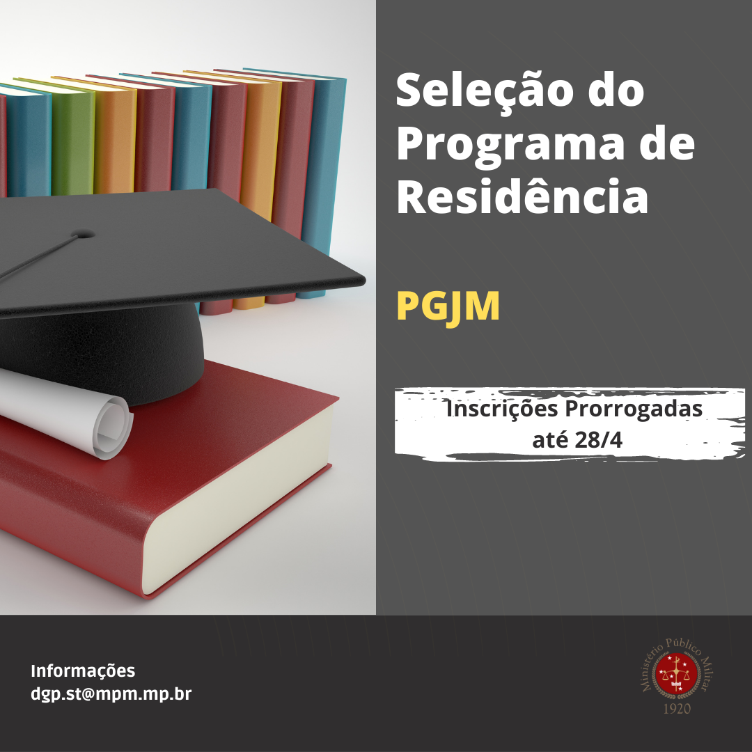 A Procuradoria-Geral de Justiça Militar publicou Edital de prorrogação das inscrições do processo público de seleção de residência para formação de quadro de reserva para admissão de candidatos ao Programa de Residência para as áreas Engenharia Civil, Engenharia E. . .14 de abril de 2023