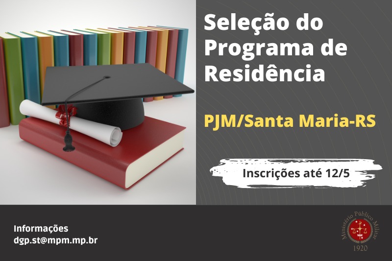 A Procuradoria de Justiça Militar em Santa Maria/RS lançou Edital do processo público de seleção de residência e para formação de quadro de reserva para admissão de candidatos ao Programa de Residência Jurídica, conforme disposto na Portaria PGJM nº 203 de 03/10/2022. . .24 de abril de 2023