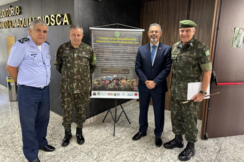 Na manhã da segunda-feira (27), o procurador-geral de Justiça Militar, Antônio Pereira Duarte, e o chefe de Gabinete para Assuntos Jurídicos, Cícero Robson Coimbra Neves, acompanharam a Abertura e Aula Inaugural do 1º Estágio Geral para Assessores Jurídicos do Exérci. . .28 de março de 2023