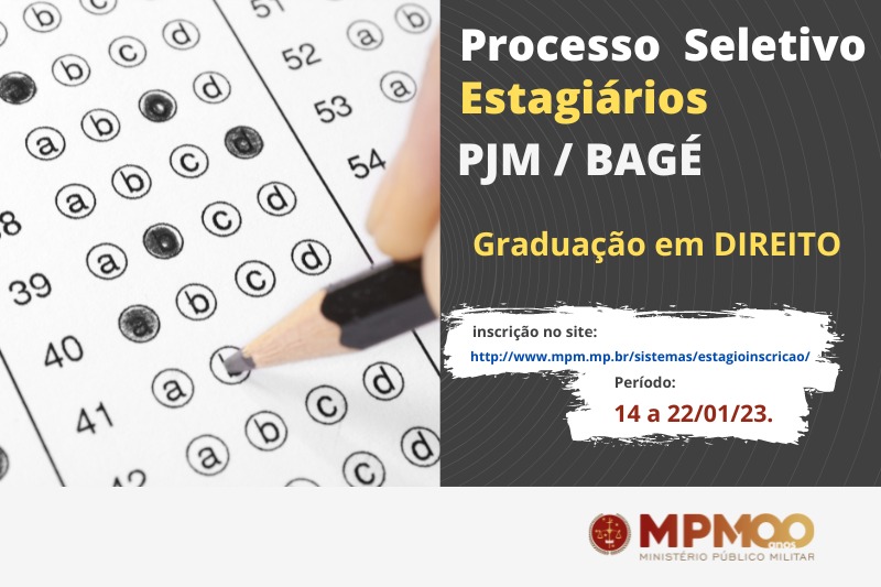 A Procuradoria de Justiça Militar em Curitiba/PR abriu processo de recrutamento para serviço voluntário em Direito. Poderão prestar serviço voluntário quaisquer cidadãos com idade mínima de 18 anos que estejam cursando ou tenham concluído curso superior em Direito. Cliq. . .13 de janeiro de 2023