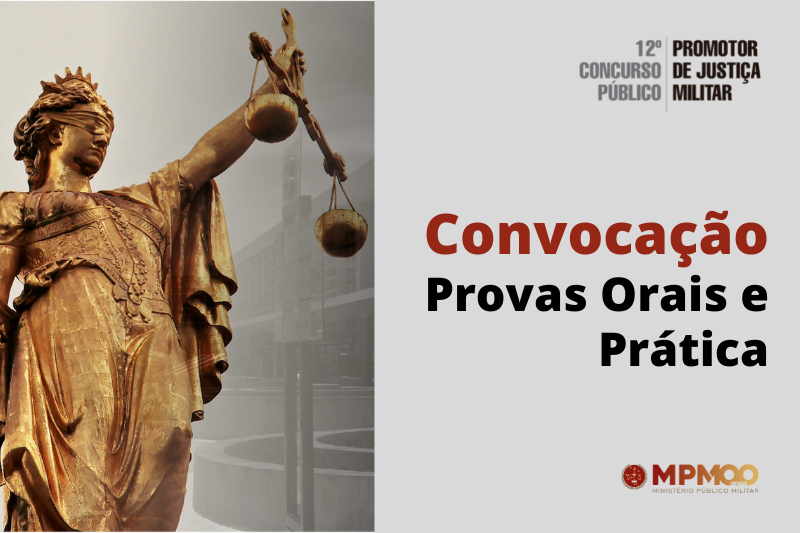 Publicado no Diário Oficial da União de hoje (19), o Edital de Convocação para as Provas Orais e Prática do 12º Concurso Público para Promotor de Justiça Militar – 12º CPJM, que serão realizadas no período de 14 a 18 de novembro de 2022, na Sala de Reunião do Co. . .19 de outubro de 2022