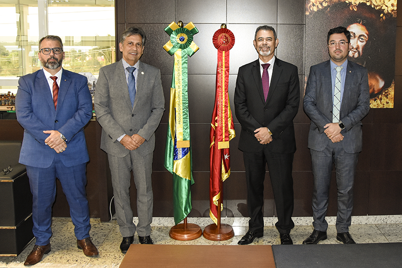 O procurador-geral de Justiça Militar, Antônio Pereira Duarte, recebeu nesta tarde (7) as visitas do conselheiro nacional do Ministério Público Jaime de Cassio Miranda e do diretor-geral adjunto da Escola Superior do Ministério Público da União, Manoel Jorge e Silva Ne. . .7 de outubro de 2022