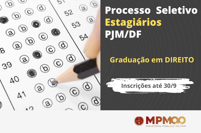 A Procuradoria de Justiça Militar em Brasília/DF divulga o Edital nº 01, de 20 de setembro de 2022, para preenchimento de vaga de estágio, destinado a estudantes do curso superior de Direito. A pré-inscrição deve ser feita na página eletrônica do Ministério Público Mi. . .21 de setembro de 2022