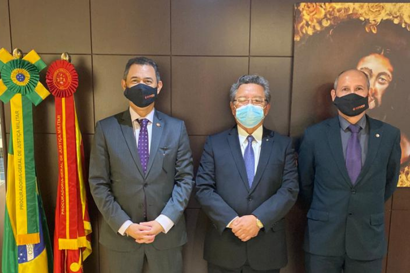 No final da tarde da segunda-feira (29), o corregedor-geral do Ministério Público do Trabalho, Jeferson Luiz Pereira Coelho fez uma visita à Procuradoria-Geral de Justiça Militar. No encontro com o procurador-geral Antônio Duarte e com o vice-procurador-geral Clauro Bo. . .30 de novembro de 2021