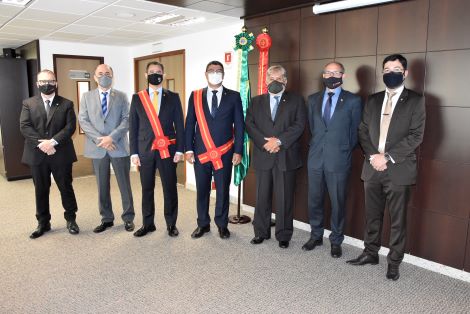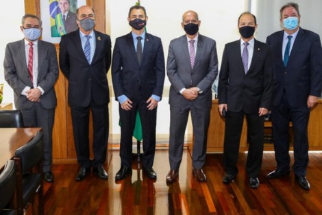 O procurador-geral de Justiça Militar, Antônio Pereira Duarte, acompanhado do conselheiro do CNMP, Marcelo Weitzel, do secretário-geral do CNMP, Jaime de Cassio Miranda, do presidente da ANMPM, Edmar Jorge de Almeida, e do secretário de Relações Institucionais do MPM, Anto. . .14 de outubro de 2021